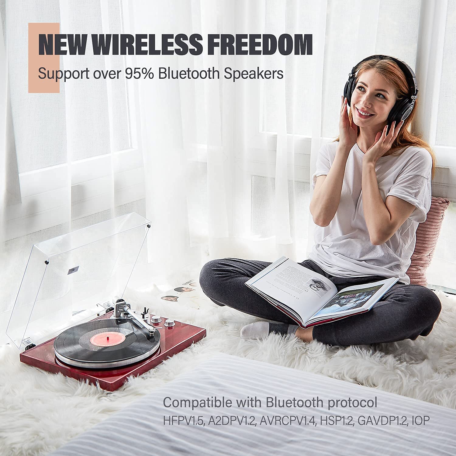 Enhance your audio experience with wireless listening. Bluetooth connectivity seamlessly pairs with speakers or headphones, creating an immersive, clutter-free environment for enjoying your favorite vinyl records.